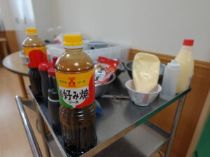 お好み焼きのソースたちも様子を見ています。