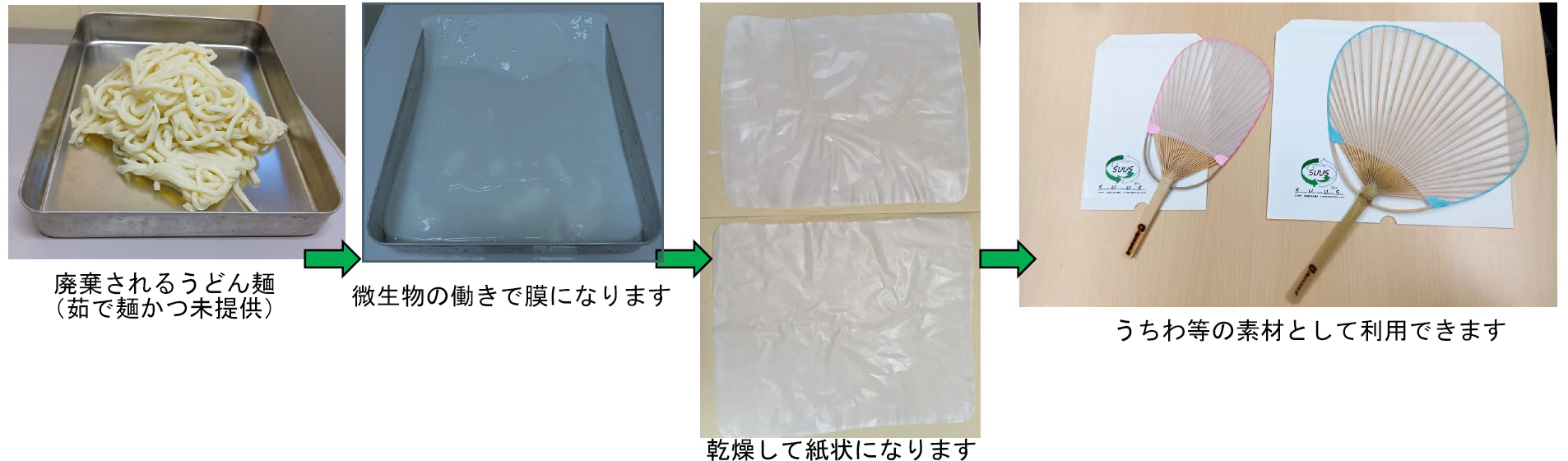 当法人(社会福祉法人うぶすな会)は、廃棄されるうどんに付加価値を与える仕組み(SUUS)を通して、食品ロス削減・地域福祉力の向上・新たな事業創出などを可能とする循環型社会モデルを提案・実施します。